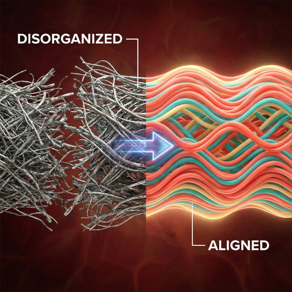 Collagen is the building block of our tissues. It helps create structure within the cells for optimal injury recovery. Muscle scraping can boost collagen activity, like fibroblast proliferation and alignment of new collagen fibers.This means there will be plenty of new cells to facilitate healing of injured tissue.